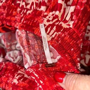 Free People medium Beach Day Mini Dress Keyhole Front Bare Back Red Geo Print tote 7