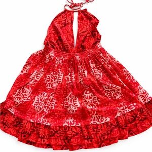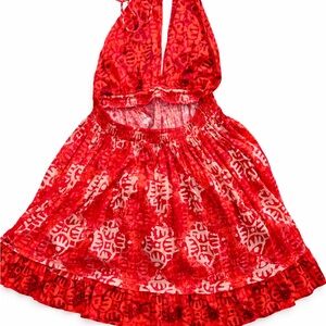 Free People medium Beach Day Mini Dress Keyhole Front Bare Back Red Geo Print