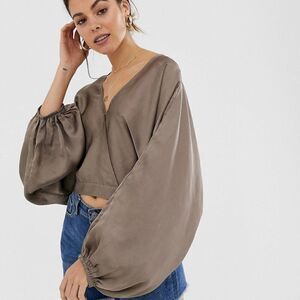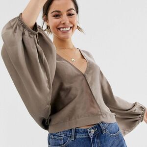 Free People midnight vibes balloon sleeve blouse mushroom nude beige tan size XS