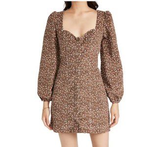 Free People Call Me Cord Mini dress that features an A-line silhouette and a printed corduroy fabrication. Short dress flaunts a sweetheart neckline and long puff sleeves. Full button-up front. Straight hemline falls at a flirty length. 99% cotton, 1% spandex. Machine wash cold and tumble dry low
