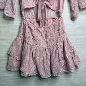 Free People mini dress floral lace cutout ruffled tiered sheer mesh boho Small