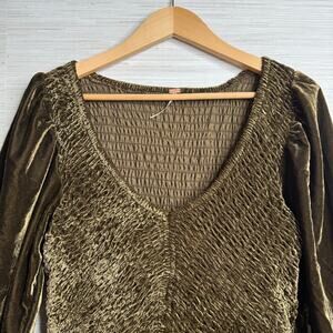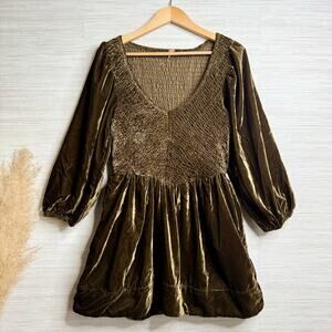 Free People mini dress velvet smocked pleated boho cocktail party Small