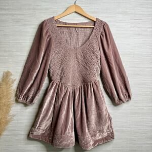 Free People mini dress velvet smocked pleated boho cocktail party Small