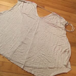 Perfect for Warm weather A bouquet of flowers around your neck creating a deep V, so soft and easy. You can scrunch up the shoulders and tie them off . Very lightweight, oversized