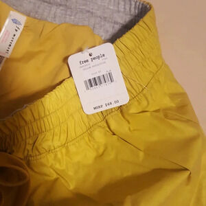 Free People Movement moonlight yellow reflective shorts. See pictures for measurements.. Waist straight across is 13-1/2" But can stretch to about 16-1/2"..Shorts have subtle dark marks on it that make them reflective.