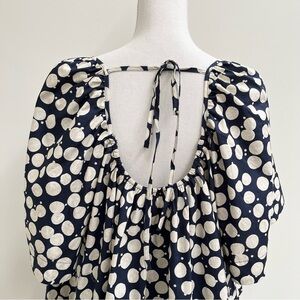 Free People navy blue dot 60’s inspired cotton parachute dress pockets open back XS in excellent condition, no flaws. I love the ease and simple style of this dress great quality and comfortable. Drawstring neck and open back. Oversized relaxed fit. Manikin is a size 6