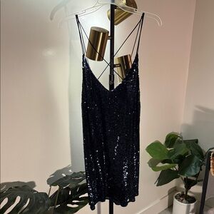 Free People navy sequin date night sexy vegas shimmering night Backless Dress L