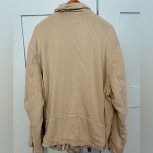 Oversized Free People moto jacket in 100% cotton. Size XL, no flaws, never worn. Color is off white, vanilla. Second picture captures color best.