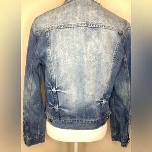 Free People oversized Women Jean Denim Jacket Lightly Distressed XS to Small