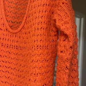 Free People oversized chunky wool blend open knit sweater. EUC Size XS