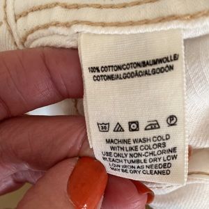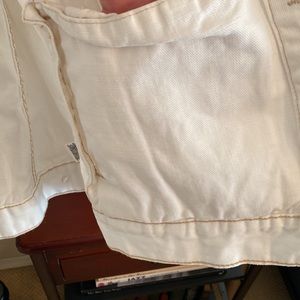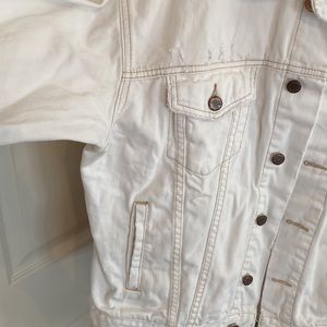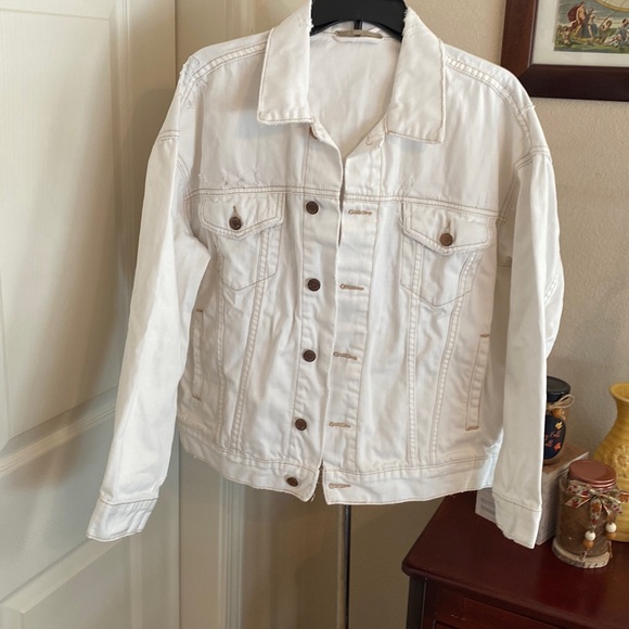 Free People oversized distressed denim jacket XS, soft white w/copper buttons