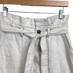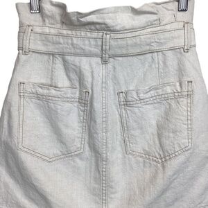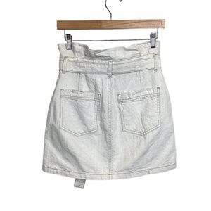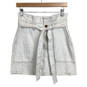 Free people oatmeal colored denim paper bag waist mini skirt with a zippered back, belt tie at the waist, front and back pockets. Size 2. Like new condition. Measurements..waist..28..length..17