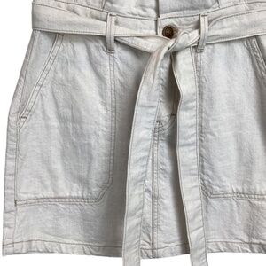 Free People paper bag waist mini skirt oatmeal denim size 2 zippered & belt tie