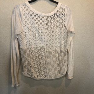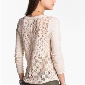 Free People patchwork Lacey back crochet ivory long sleeve top size small