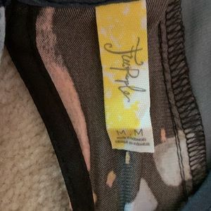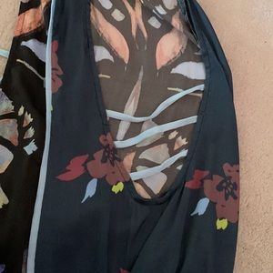Only worn once! Beautiful pattern on soft, silk-like material. Sides of the dress are open with 3 slits, shown in pictures. This dress looks cute without a bra or with a colorful bralette underneath