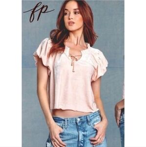 Free People pink Peach velvet top sz Med Pit 21 Length 22 Nwot