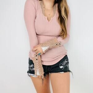 Free People Women's Size small pink waffle knit contrasting cuff thermal