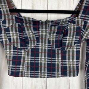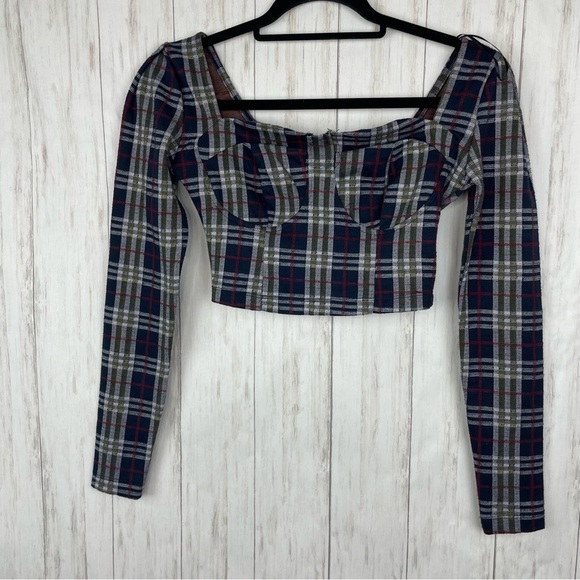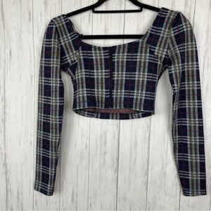 Free People plaid long sleeve crop top size 0