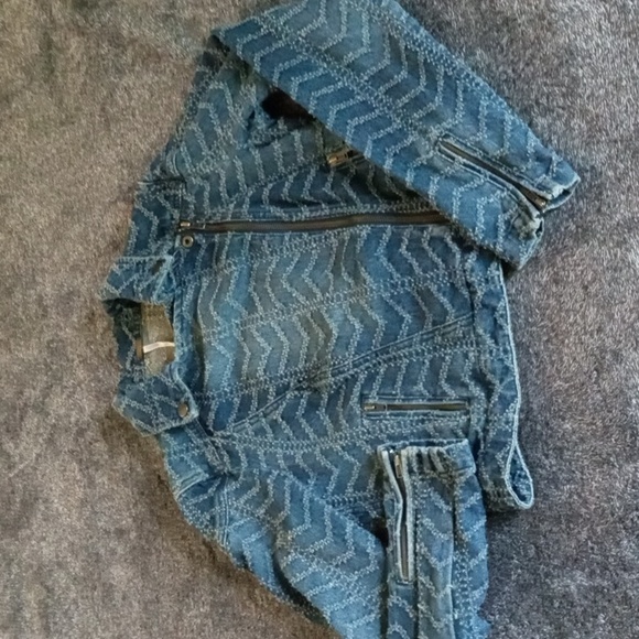 Free People punched chevron moto jacket Chevy Blue