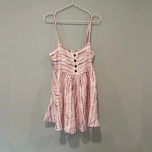 A true wear-anywhere essential, this staple romper is featured in a sweet, smock-inspired silhouette with natural tie dye striping, button-front neckline, and pleated bottom piecing for added dimension.
