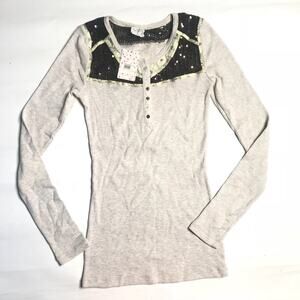 Free People THERMAL TRINKET LONG SLEEVE HENLEY IN OATMEAL HEATHER