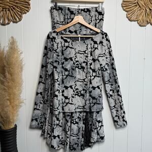Free People set co-ord top and midi skirt pleated matching set boho XS