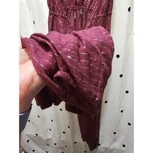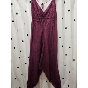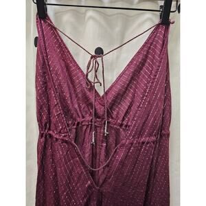 Free People sheer maroon silver pin striped balloon leg v-neck jumpsuit XS