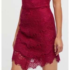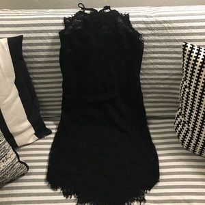Free People she's got it slip dress in black. Pictures shown are in maroon to show intricacy of dress, but I have it in black (pictures in black also available). Great dress, got so many compliments on it at Coachella :) only worn once and all lace still intact with no major rips. Let me know if you would like more pictures!