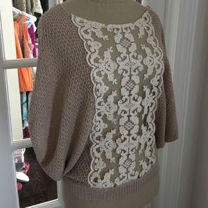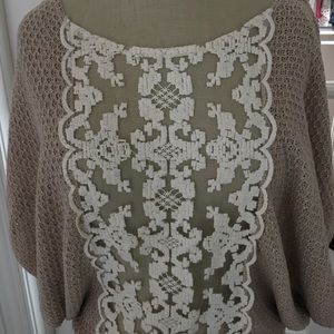 Free People batwing sweater with sheer lace panel down the center and shimmer detail size M
