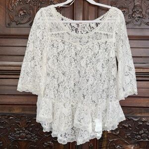 Free People shirt Lace Scallop Hem Top XS Romantic Cottagecore Boho