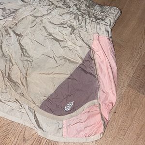 Worn once free people active shorts. High wasted. Color block. Tan with pink and purple. Size large. Perfect condition