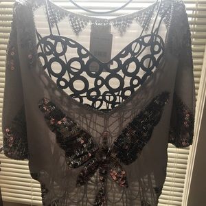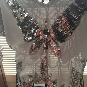 Free People silver sequin mid rise Top RARE