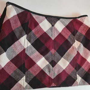 Free People size 10 (very) mini skirt; color is burgundy.