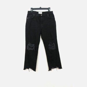 Free People size 27 Maggie Mid Rise Straight Leg Jeans Black Distressed NEW