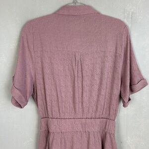 Free People size L mini wrap dress purple short sleeve cotton linen blend NEW
