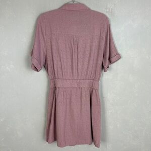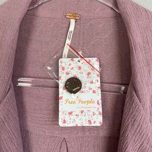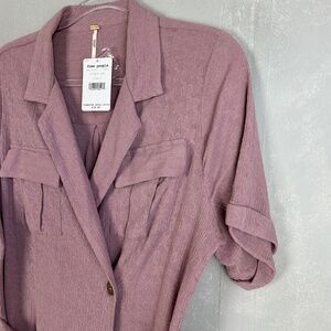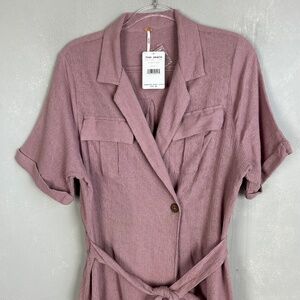 Free People size L mini wrap dress purple short sleeve cotton linen blend new with tags