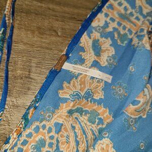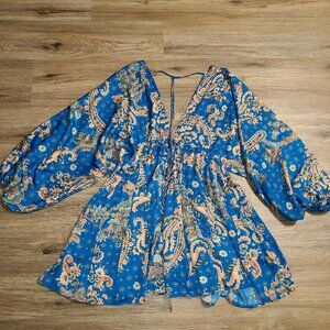 Free People size S Satin Mini Flare Dress Printed Arzel Draped long Sleeve