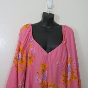 Free People size XL Francesca Mini Dress Ballon Sleeve V Neck Floral Boho NEW