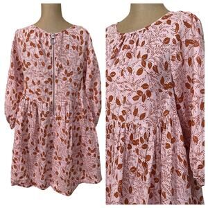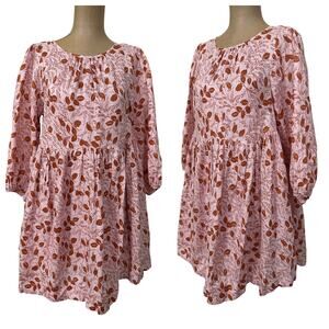 Free People size XS Mini Dress Paper Hearts Pink Linen Long Sleeve Empire Waist