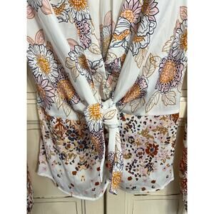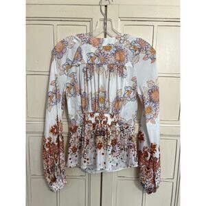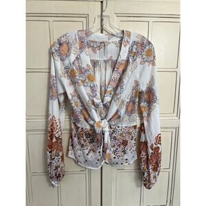 Free People size XS Run Free top in excellent condition. Buttons down the front and toes in the front. Measures 18” from armpit to armpit and 23” long.