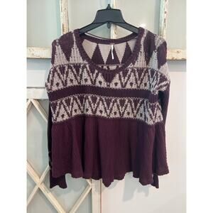 Free People size small maroon and beige sweater top in nice condition. Measures 24” from armpit to armpit and 24 1/2” long.