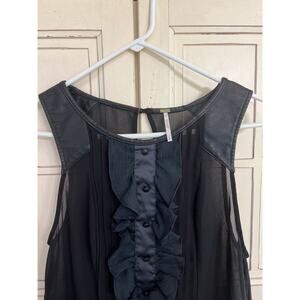 Free People size small sheer sleeveless top with faux leather trim. Measures 16” from armpit to armpit and 24” long. Great condition.