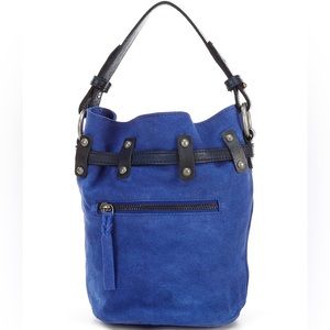 Free People soren suede bucket bag in rinsed cobalt blue NWT