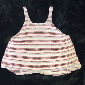Free People Stripe Sailor loose-fit tank top in size small. Cream color tank has thin stripes of deep orange, silver gray, and charcoal gray. Front is crocheted and back is knit. Slight signs of wear, but no stains or holes. In great condition. Falls loose and is so comfortable!
