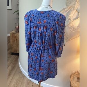 Free People style “Blue Combo” tulip floral boho peasant V-Neck Floral Top dress