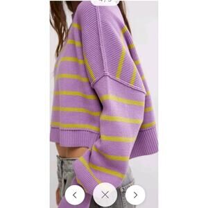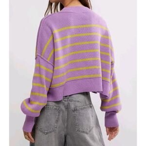 The product is a Free People striped cotton blend sweater, specifically a cropped knit pullover in size XS. The sweater is designed for women and features an oversized fit, perfect for a trendy and comfortable look. The striped pattern adds a stylish touch to the pullover, making it a versatile piece for any casual or semi-casual outfit. Made from a soft cotton blend fabric, this sweater is both chic and cozy, ideal for layering or wearing on its own.