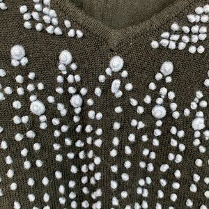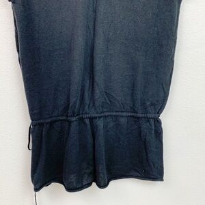 Free People cozy black thin sweater knit top with light periwinkle blue yarn embroidered french knots framing the V neck. Drop waist with drawstring creating a peplum.