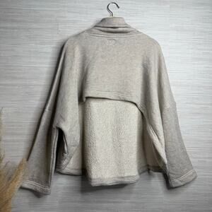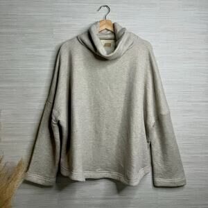 Top: Reversible. Oversized turtleneck silhouette. Cozy knit fabrication, high-low hemline, exaggerated neckline, reversible design that can be worn at the front or back.