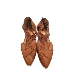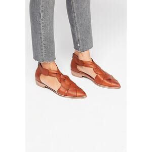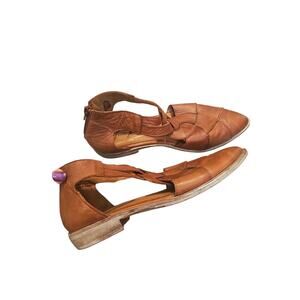 Free People sz 37 Wanderlust Braided T-strap Flat In Brown leather sz 7 SH236
