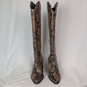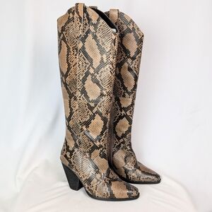 Free People sz 39 / 8.5-9 Snakeskin Night Day Tall Leather Western Boots Cowgirl